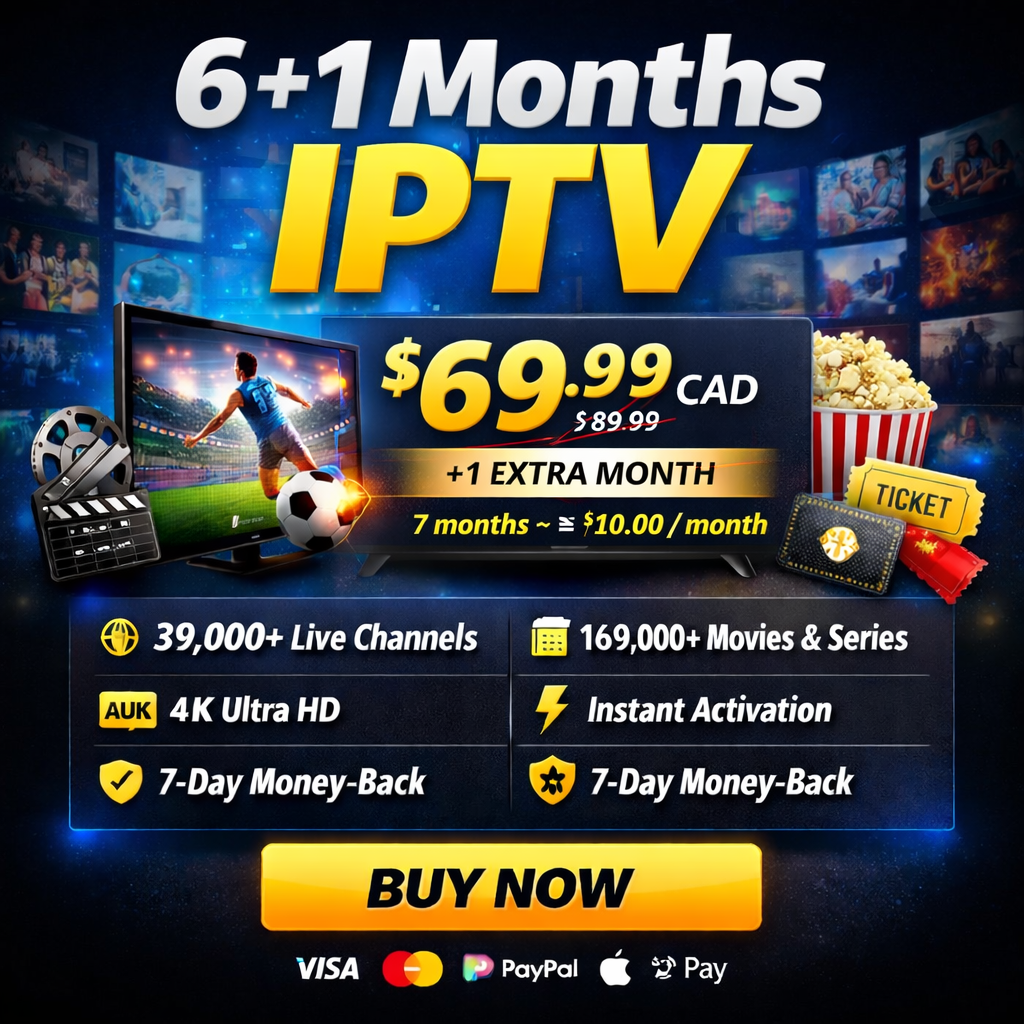 Pay for 6 months iptv subscription and get 1 month FREE.